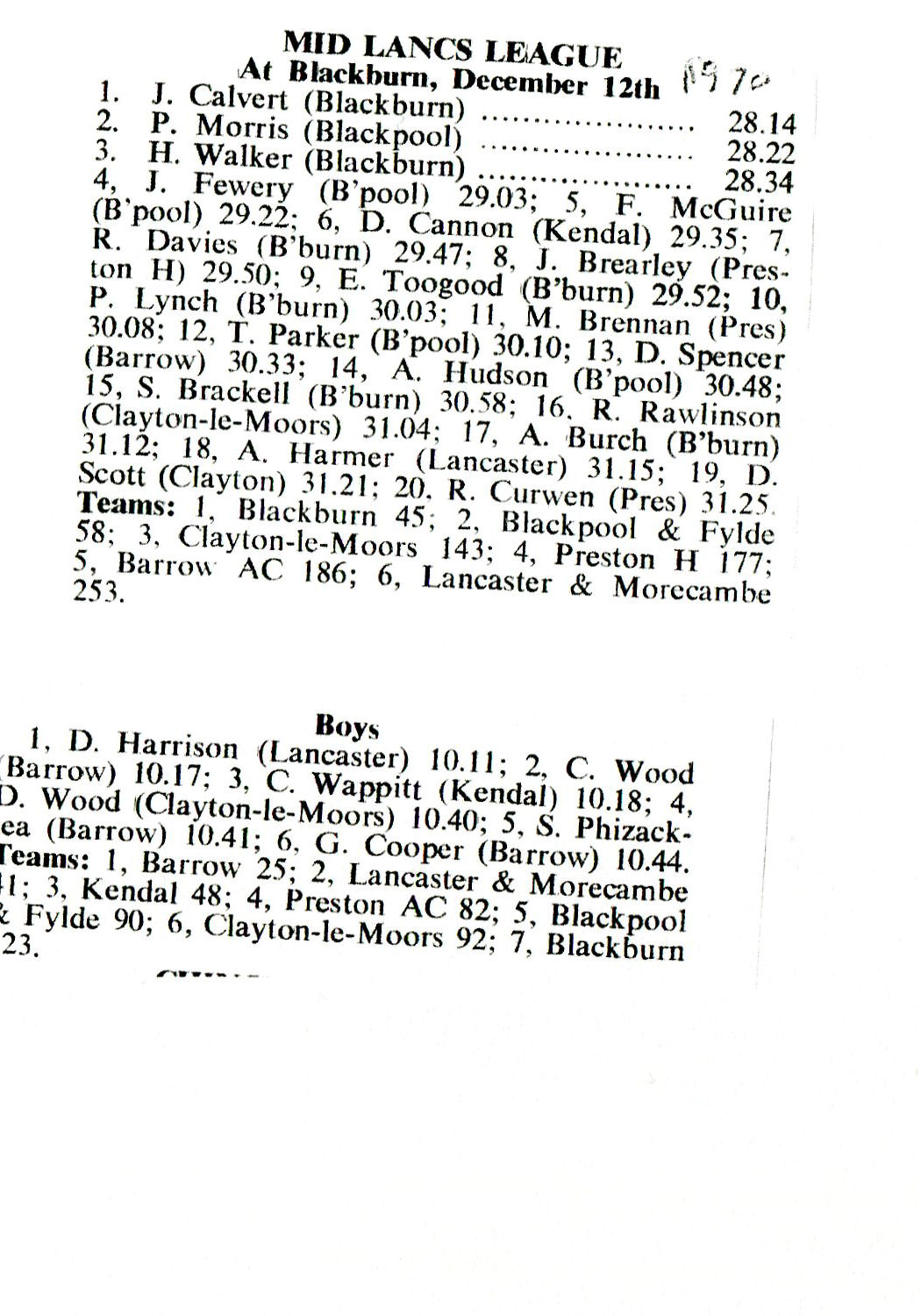 Other known 1970's fixtures / results - see season's results for final placings where known:
